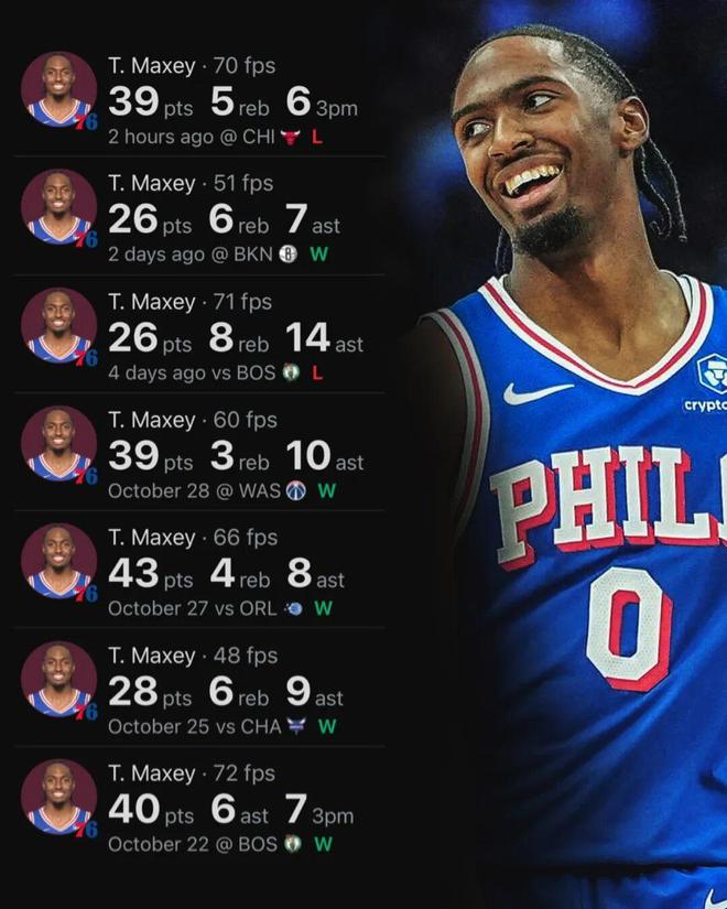 反观76人,马克西真尽力了,全场比赛,他一共打了39分钟,投篮26中14,三分10中6,罚球5中5,以接近70%的真实命中率拿下39分5篮板5助攻3盖帽。