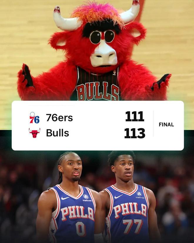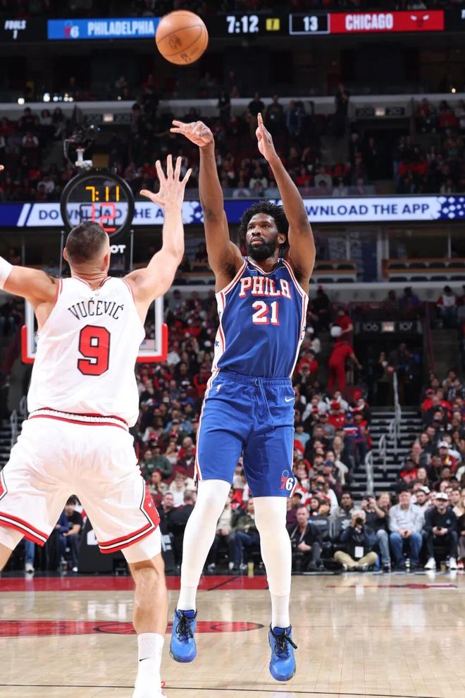 前三节还好,尤其上半场,恩比德拿了18分,他与马克西两人就合砍40分,而公牛全队得分不过56分,火力之猛确实难以阻挡。